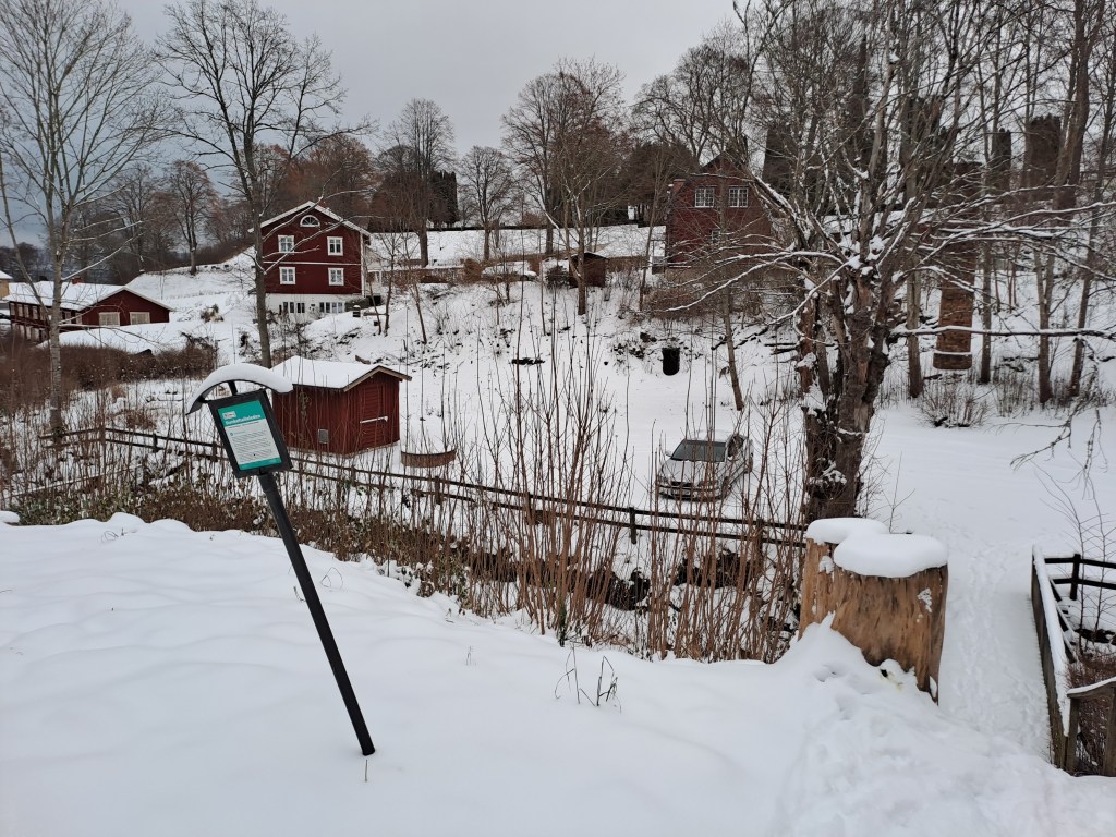 Nere på Fredriksdals forna gårdstomt försöker jag stega upp det föreslagna bostadshuset i blötsnön. Jag har inga exakta mått, min karta saknar skalangivelse. Men när jag jämför med intilliggande Munkkvarn tycks de båda husen överensstämma. Knappast en modest exploatering, tänker jag och försöker göra mig en föreställning om storlek och volym.