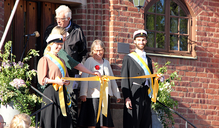 Västergötlands museibyggnad firar 100 år 2019 och jag gratulerar museet från Västergötlands Fornminnesförening. Bakom står museistiftelsens dåvarande ordförande Roland Andersson.