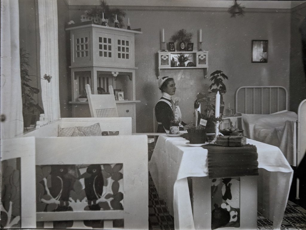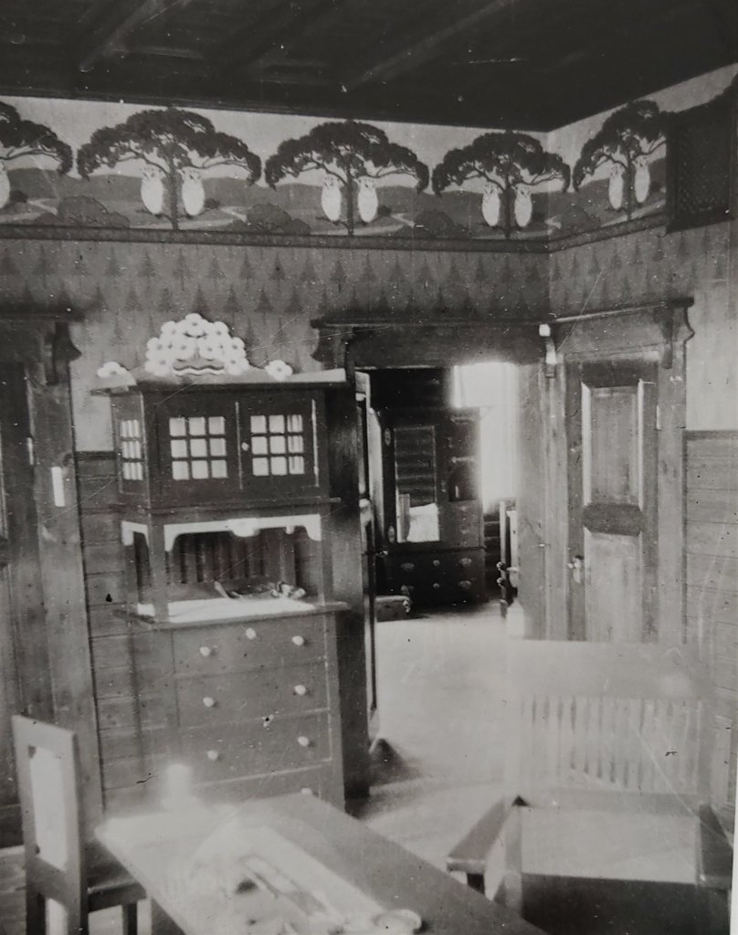 ”Pressens villa” innehöll en barnkammare, se fotografiet. Visst är det något bekant över möbeln? Stod det inte en nästan exakt likadan möbel i ett av rummen på ålderdomshemmet 1925? Det fotografiet fanns ju i ett album på hembygdsgården som förärats Emy von Essen.