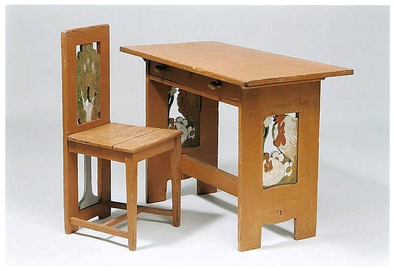 1. Den senapsgula barnkammarmöbeln som Nationalmuseum har kommer från Carl Westmans egen villa, ritad av honom 1903, där den stod i barnkammaren att användas av hans sex barn. Ärvdes inom familjen och skänktes på 1980-talet av ett av barnbarnen till Nationalmuseum.
