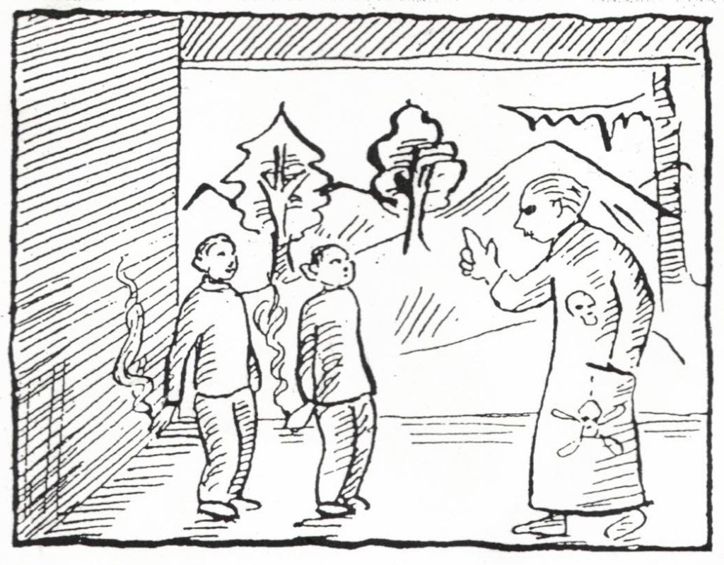 Wilhelm Scharp var överläkare på Romanäs under Harriets första tid. Scharp hade som så många andra sanatorieläkare själv haft tbc. På bilden syns han läxa upp ett par smygrökande patienter. Överläkaren hade en alldeles särskild ställning på sanatoriet, för patienterna framstod han som en allsmäktig Fader med makt att styra över liv och död.