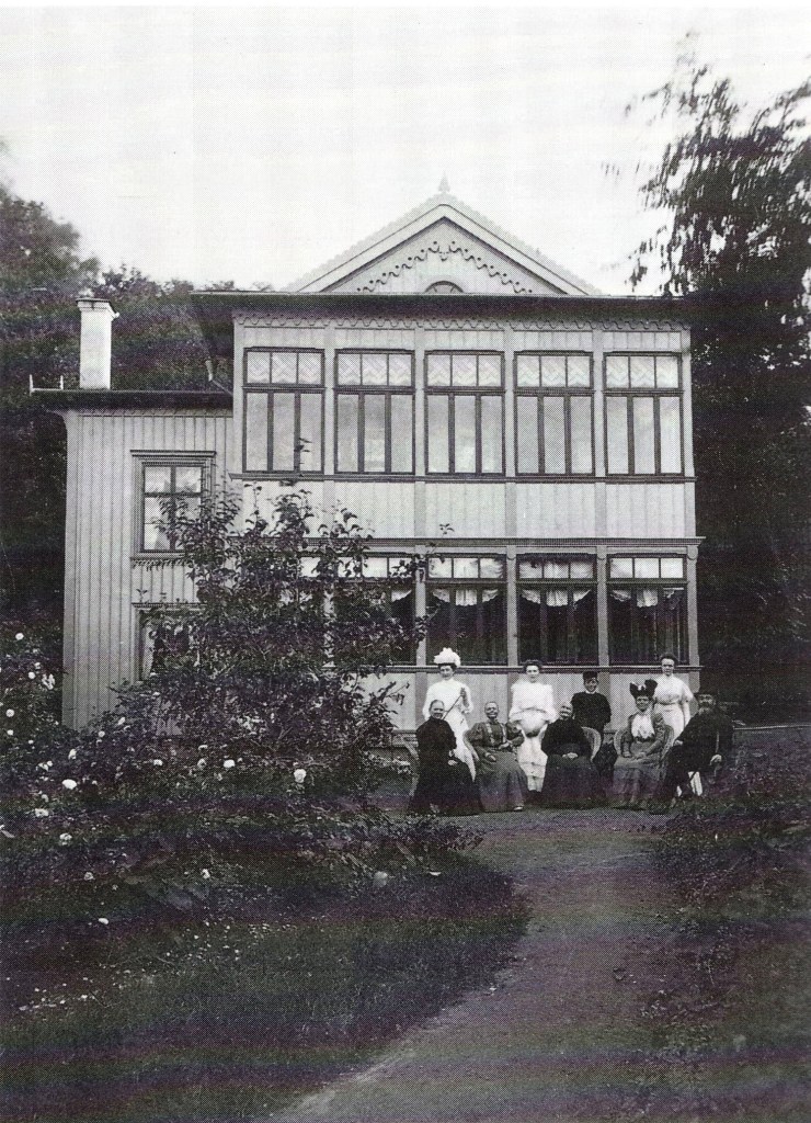 Verandan hör till Fredriksdal i Dunkehalla som vid denna tid ägdes av Viktor Lindström. På ett annat fotografi har hela familjen Lindström ställt upp sig framför den nyligen uppförda glasade verandan.