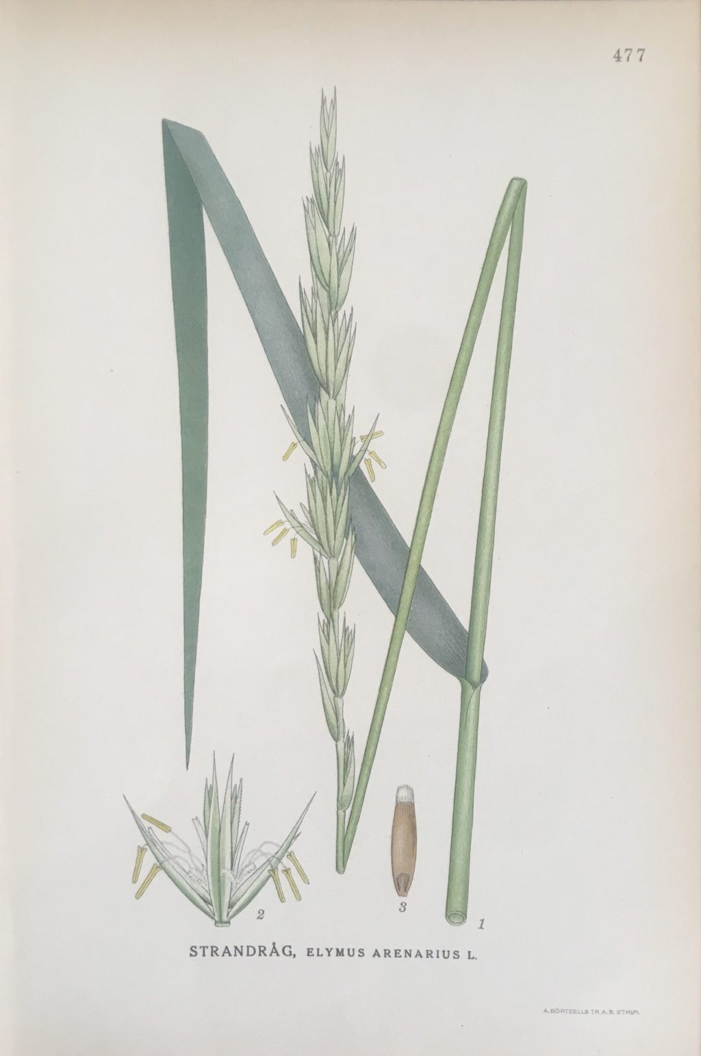 Strandråg är ett meterhögt kraftigt gräs med styva blågröna blad. Den växer allmänt på sandiga havsstränder i hela landet, men förekommer också i inlandet. Ibland har den till och med planterats för att binda sanden. Som Linné noterar, kryper dess rötter i sanden likt kvickrotens i åkern. Och en tanke väcks helt naturligt hos den nyttoinriktade och praktiskt lagde resenären …