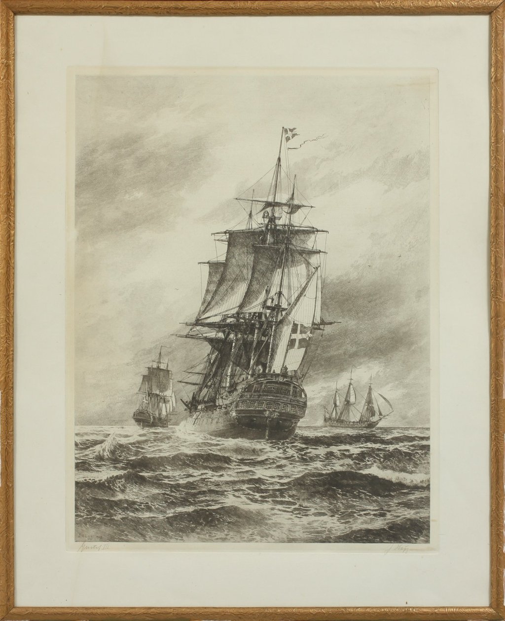 Ovan en bild av ostindiefararen Gustaf III som marinmålaren Jacob Hägg (1839 – 1931) föreställde sig henne. Bilden är lånad från Auctionet.