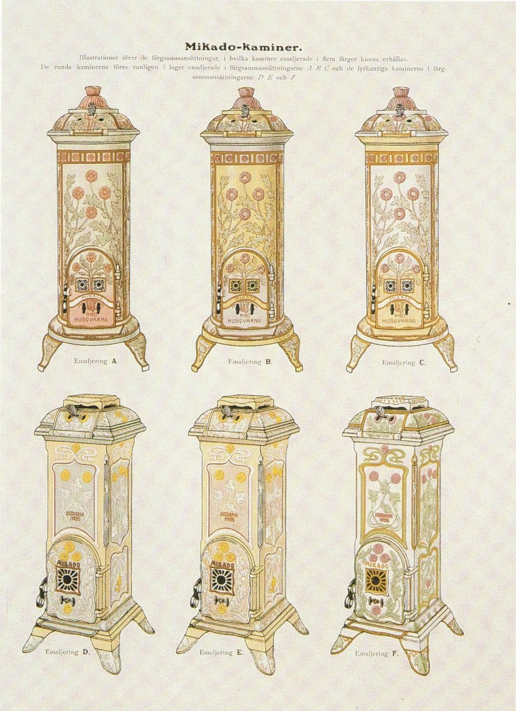 Efter 1800-talets mitt kommer järnkaminer i bruk och en viss tillverkning fanns redan på 1860-talet vid Sandwallska gjuteriet i Jönköping. Mot århundradets slut tog Husqvarna AB upp tillverkningen av gjutna järnkaminer, ofta emaljerade i vackra färger och mönster.