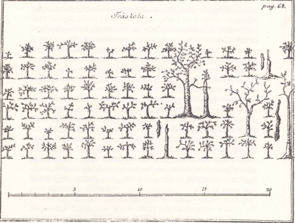 Teckningen på en Träskola kommer från boken Trädgårdspraxis 1754, utgiven av Hans Mårtensson 2002.