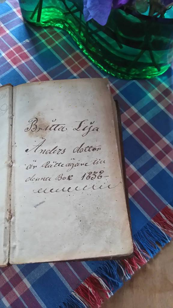 Pastor Norlanders liktal finns bevarat och finns idag på Brandstorps hembygdsgård. I Britta Lisas bouppteckning finns två psalmböcker upptagna. En måste vara den här avbildade. Och hur kunde en av Britta Lisas alla klänningar ha sett ut? Teckning från 849 av Nils Månsson Mandelgren som finns på Lunds Folklivsarkiv ger en fingervisning. Och det här ålderdomliga gångjärnet på en av dörrarna i det lilla köket har Britta Lisa säkert många gånger torkat av …