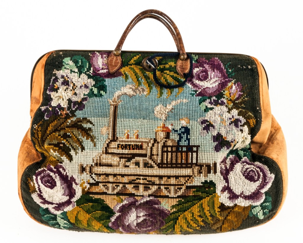 Bilden på den korsstygnsbroderade väskan är lånad från Gävleborgs museum via DigitalMuseum.