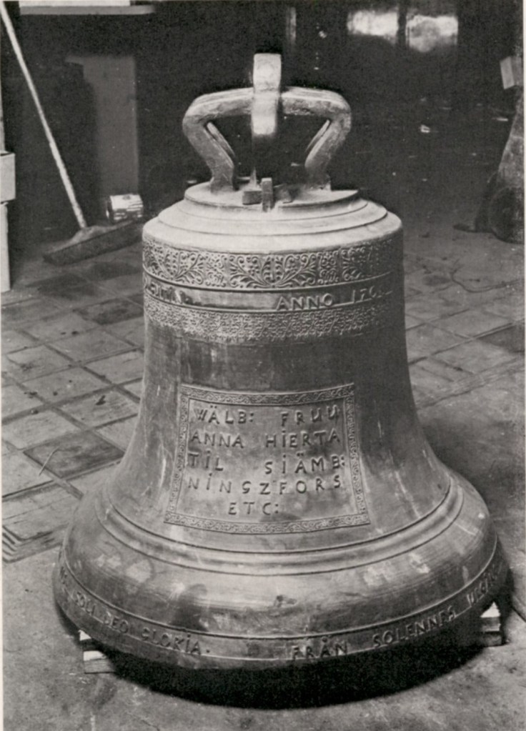 Storklockan i den nybyggda klockstapeln var en gåva från Anna Hierta 1708 (den göts om 1950). Den ursprungliga inskriptionen på klockan är, enligt Barbro Jesperssons bok om Brandstorps kyrka: