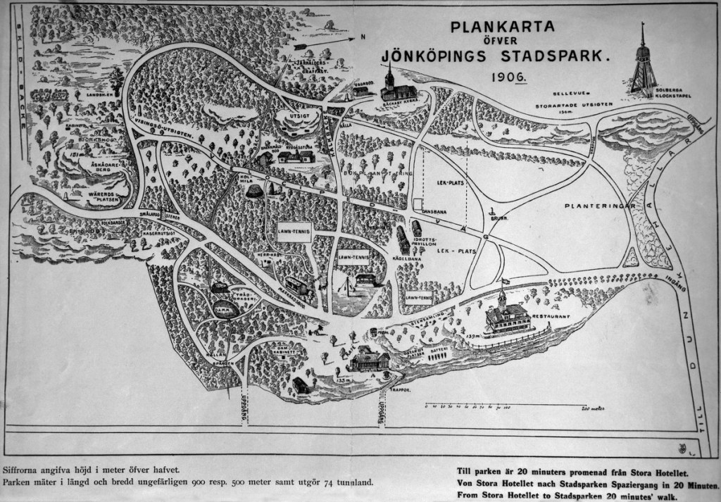 Stadsparken rymmer många fler intressanta minnesmärken och mycken historia finns att berätta. Vill man veta mer rekommenderas ett besök till länsmuseets arkiv. Stadsparkssällskapets historia kan man följa i dess handlingar som förvaras i kommunarkivet. En berättelse om Jönköpings stadspark heter en liten broschyr som undertecknad skrev i slutet på 1970-talet.