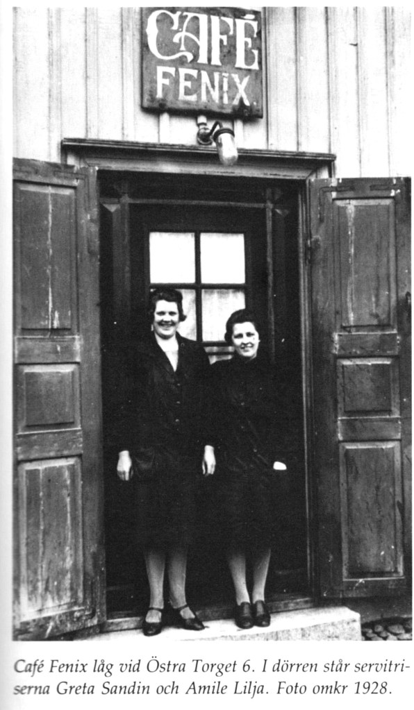 På Storgatan 6 låg vid sekelskiftet 1900 Bierhall. Innehavare under många var Augusta Emilia Pettersson. Vid Östra torget låg Café Fenix (före 1919 med adress Smedjegatan 2). Greta Sandin, servitris på 1920-talet, berättar: