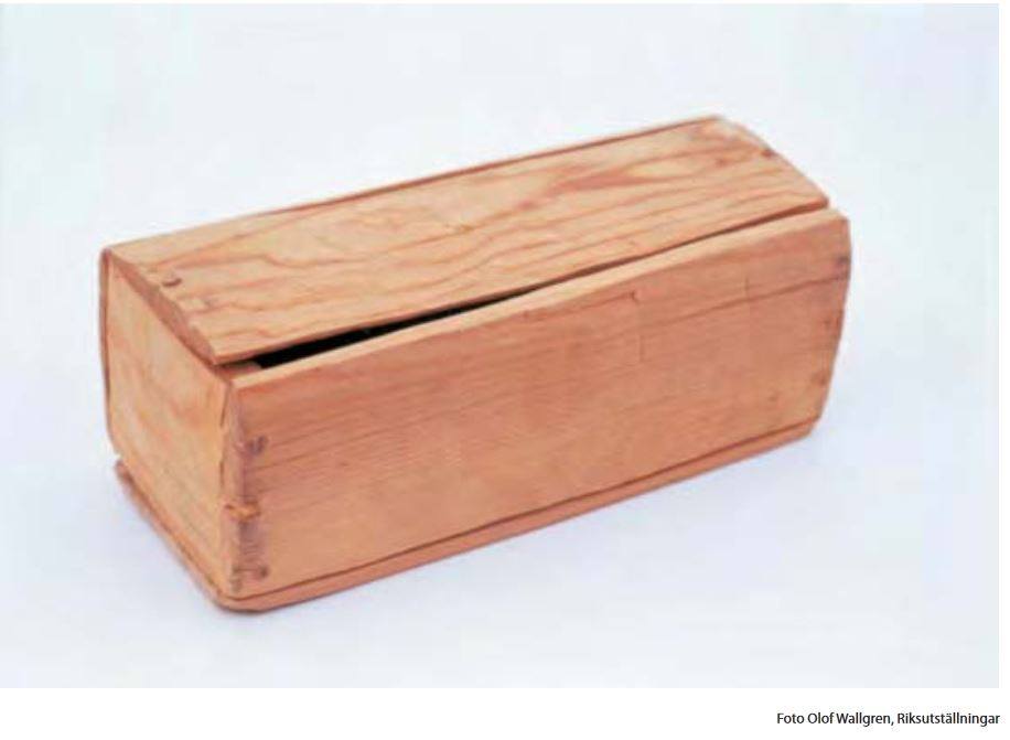 Här en bild ur boken Svåra saker, utgiven av Nordiska museet 2006. Bilden föreställer en liten kista som hittades i Bringetofta kyrka, Småland. Den visade sig innehålla ett litet barnfoster. Etnologen Eva Londos har skrivit om askegossen från Bringetofta i Småländska kulturbilder 1995.